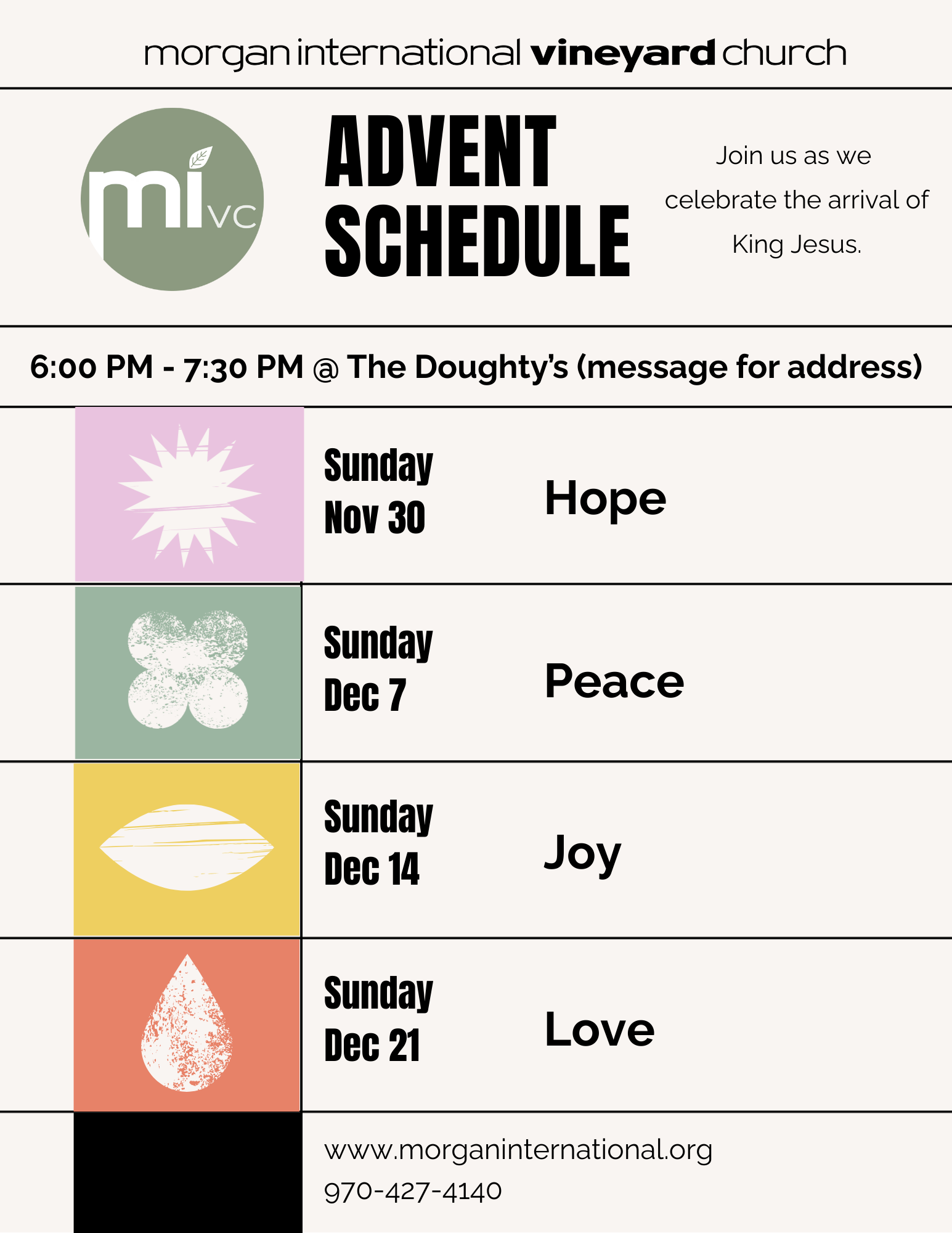 a multicultural community of healing & calling Meeting in HomessUNDAY evenings 6:00 pm - 8:00 pmcontact us for Details Together, we wait, Pray, and act with the confidence that christ is with us. Contact Us for Address